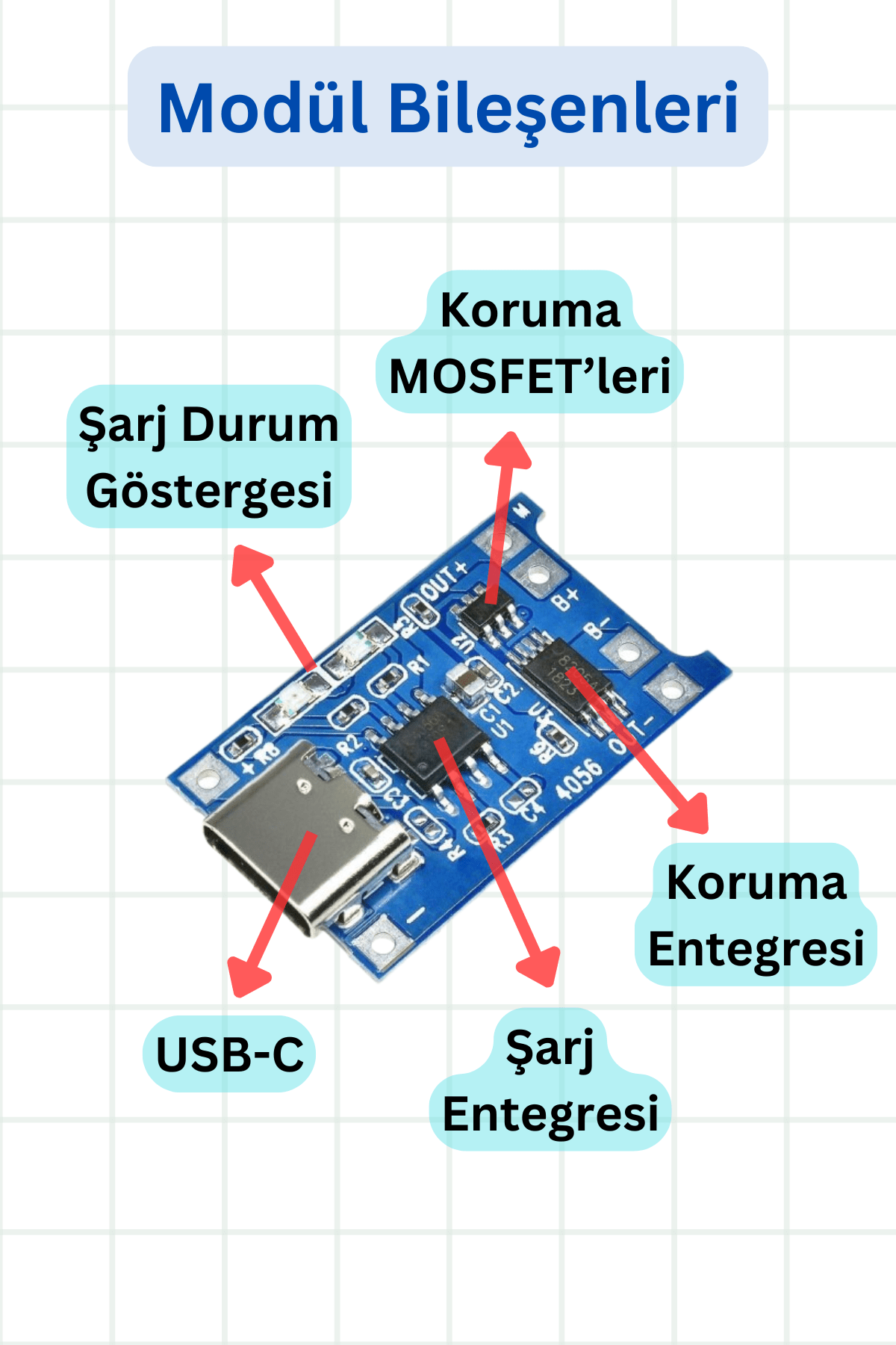 Bu devre modülleri, DIY projeleri, taşınabilir şarj cihazları ve güç kaynakları için ideal bir çözümdür. Hem güvenli hem de kolay kullanım imkânı sunan bu ürün, 18650 pil şarj sistemleri için mükemmel bir tercihtir.