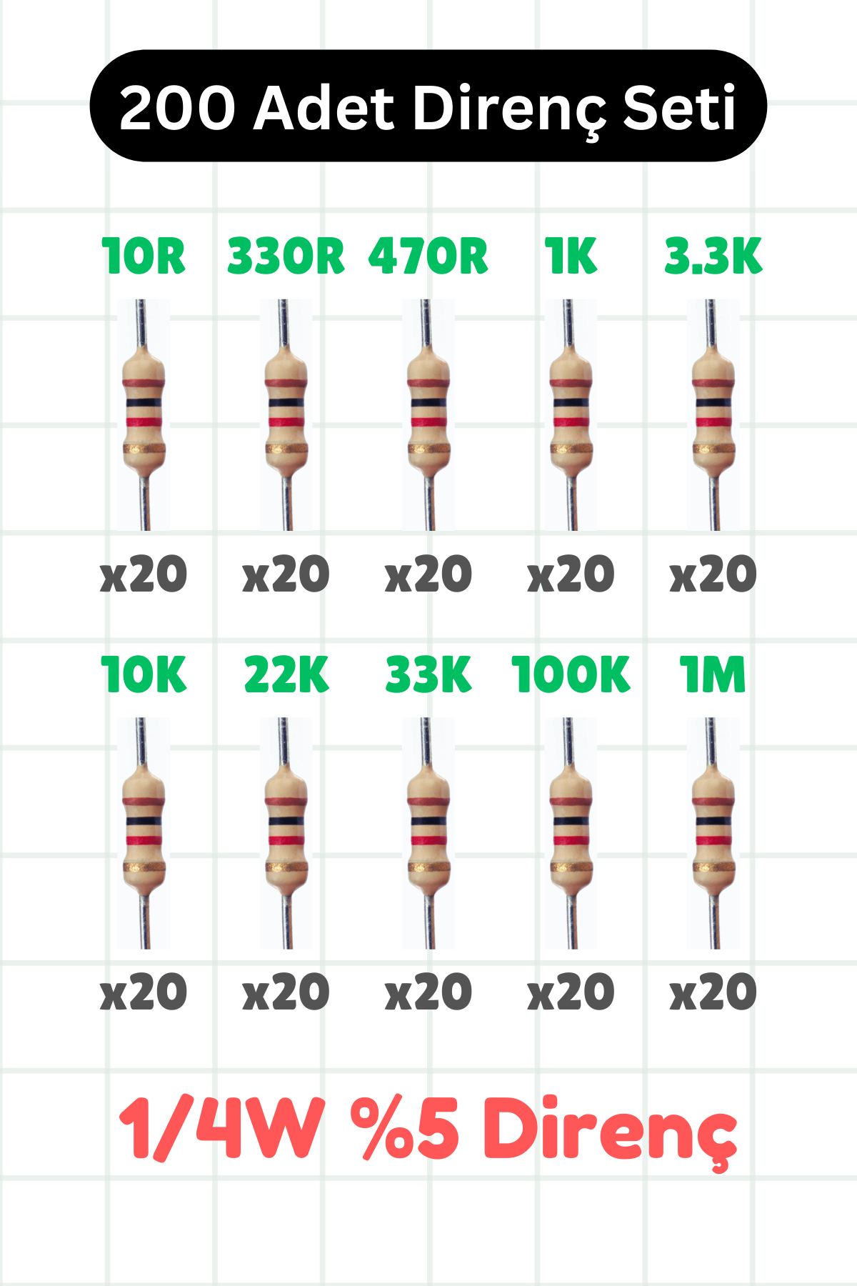 Elektroniğe ilgi duyan öğrenciler, hobi meraklıları ve prototip geliştiren mühendisler için hazırlanmış Elektronik Full Set, temel devre elemanlarını tek bir pakette sunar. Bu kapsamlı set, devre tasarımlarınızda ihtiyaç duyacağınız en sık kullanılan direnç, kondansatör, transistör, diyot ve LED çeşitlerini içerir.