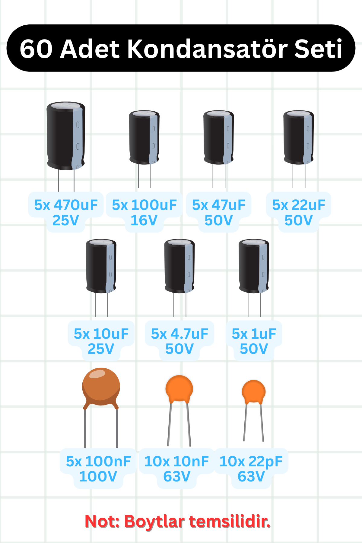 - Prototip, eğitim ve hobi projeleri için en sık kullanılan elemanları tek pakette sunar.