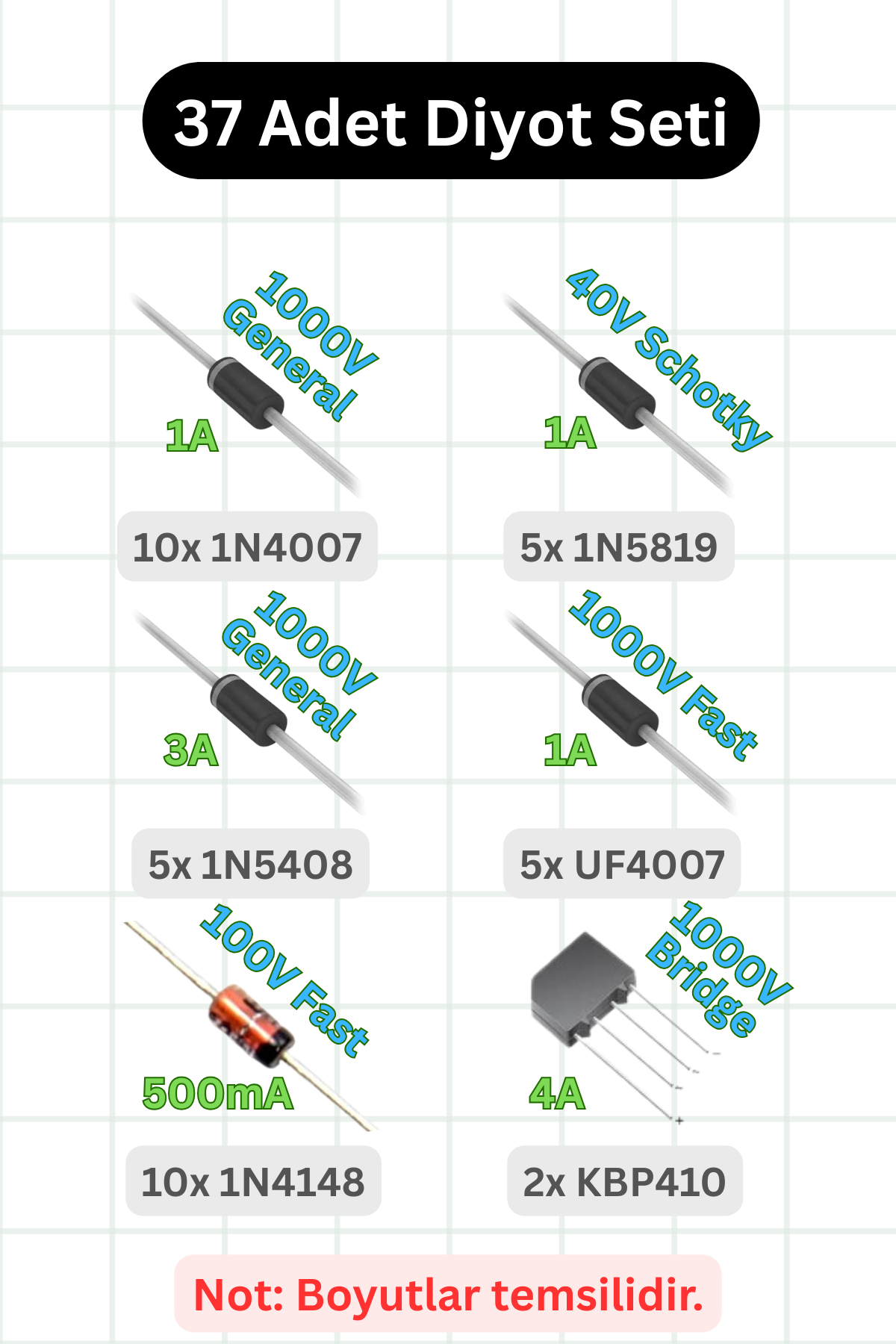 - 10 adet 1N4007– Genel amaçlı doğrultucu diyot, 1000V 1A